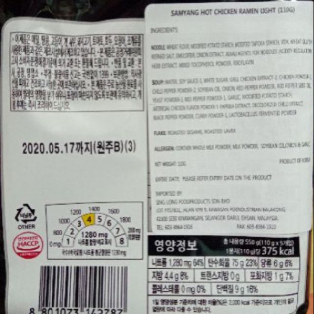 Samyang Ramen Light Version Less 40 Hot Spicy Chicken Instant shopee.com.my